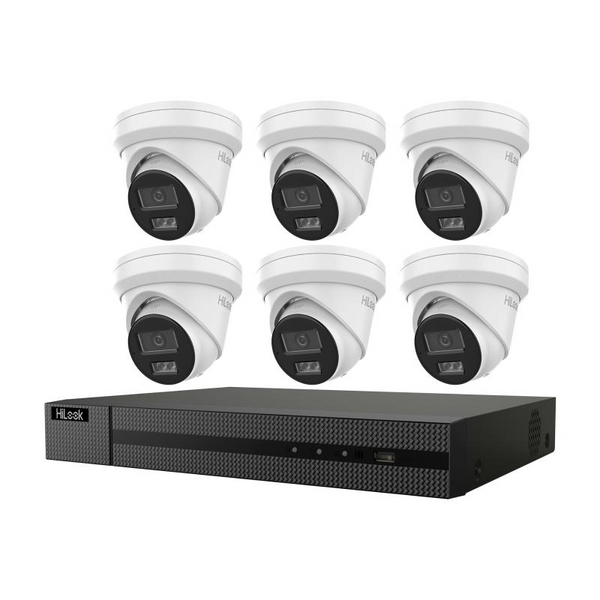 This Hikvision HiLook CCTV kit includes six 6MP turret cameras and an 8-channel PoE NVR with a pre-installed 4TB HDD, ideal for comprehensive small-scale surveillance. The NVR supports up to one channel at 8MP resolution with efficient H.265+ compression, ensuring high-quality video with optimized storage. Power over Ethernet simplifies installation by combining power and data transmission in a single cable. The system is managed easily via HiLook Vision software, providing reliable network control and monitoring. This all-in-one solution delivers professional-grade security with straightforward setup and robust performance.