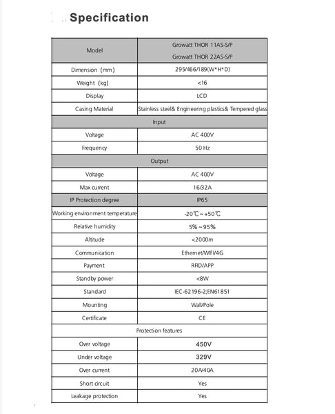GROWATT SMART EV CHARGER - 22KW 3 PHASE