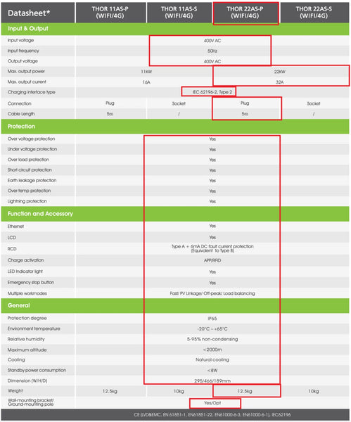 Growatt Type 2 EV Charger 22kw 3 Phase 5m Cable IP65 THOR 22AS-P